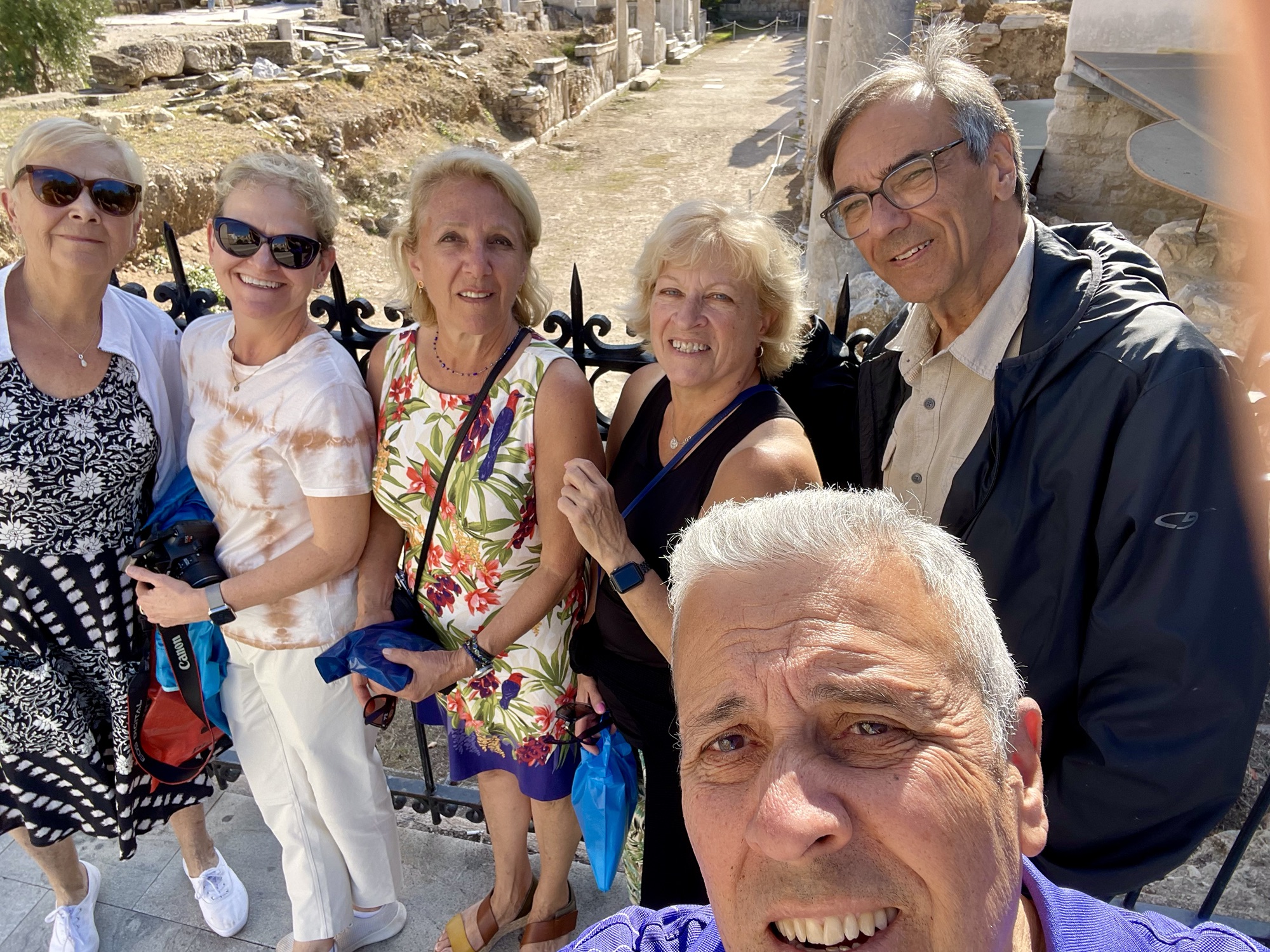 Aquí estamos con Josee, Brigitte (su hija), Pilar, Carole y Sly en el Agora Romana de Atenas.